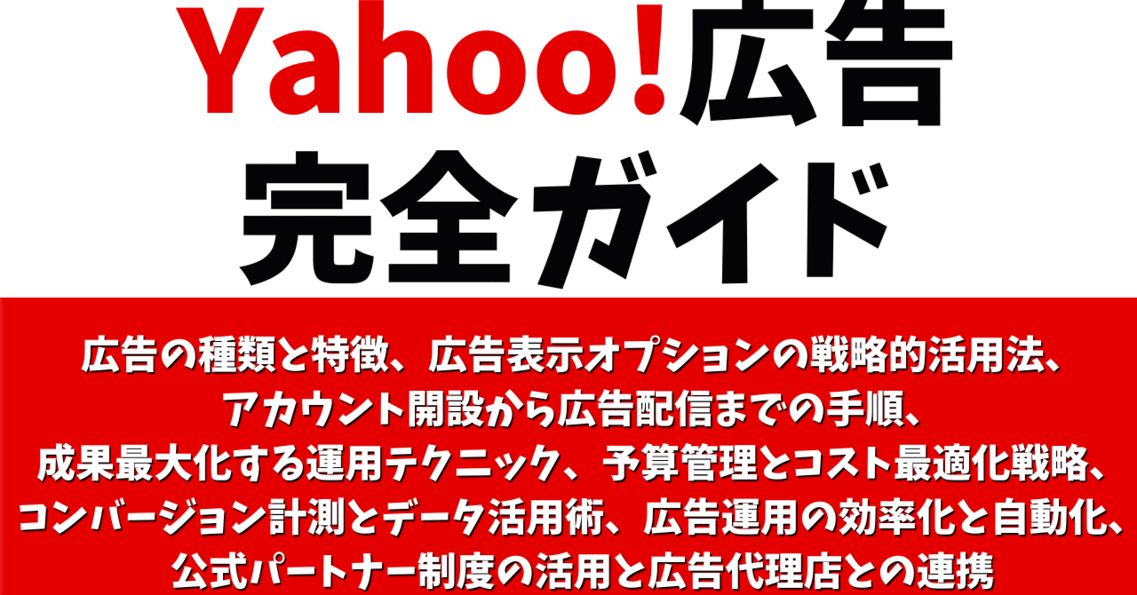 【広告主向け】Yahoo!広告ガイド:広告の種類と特徴、 広告表示オプションの戦略的活用法、 アカウント開設から広告配信までの手順、 成果最大化する運用テクニック、予算管理とコスト最適化戦略、 コンバージョン計測とデータ活用術、 広告運用の効率化と自動化、 見る 公式パートナー制度の活用と広告代理店との連携