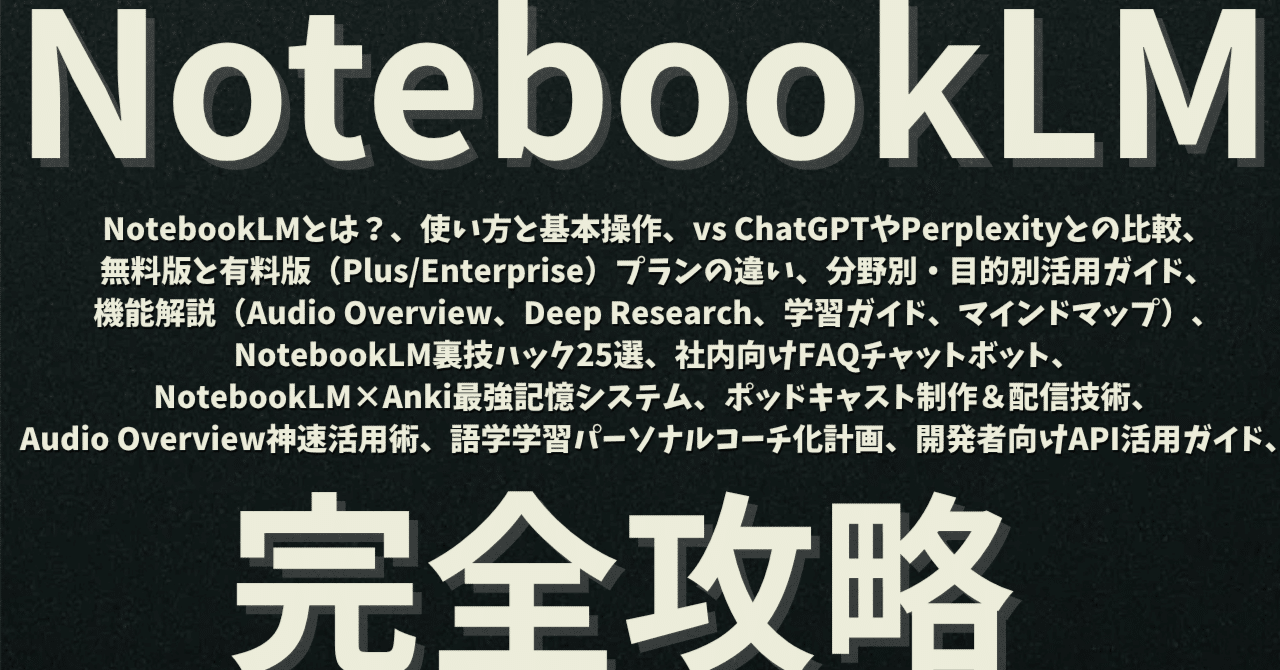 これにより、NotebookLMは個人の学習から組織的なナレッジマネジメントまで、幅広いニーズに対応する総合的なプラットフォームへと進化を遂げたのです。