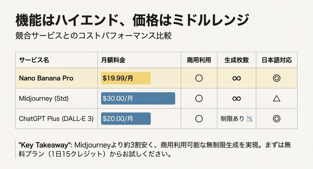 3-2. Nano Banana Pro vs 他社サービスのコスパ比較