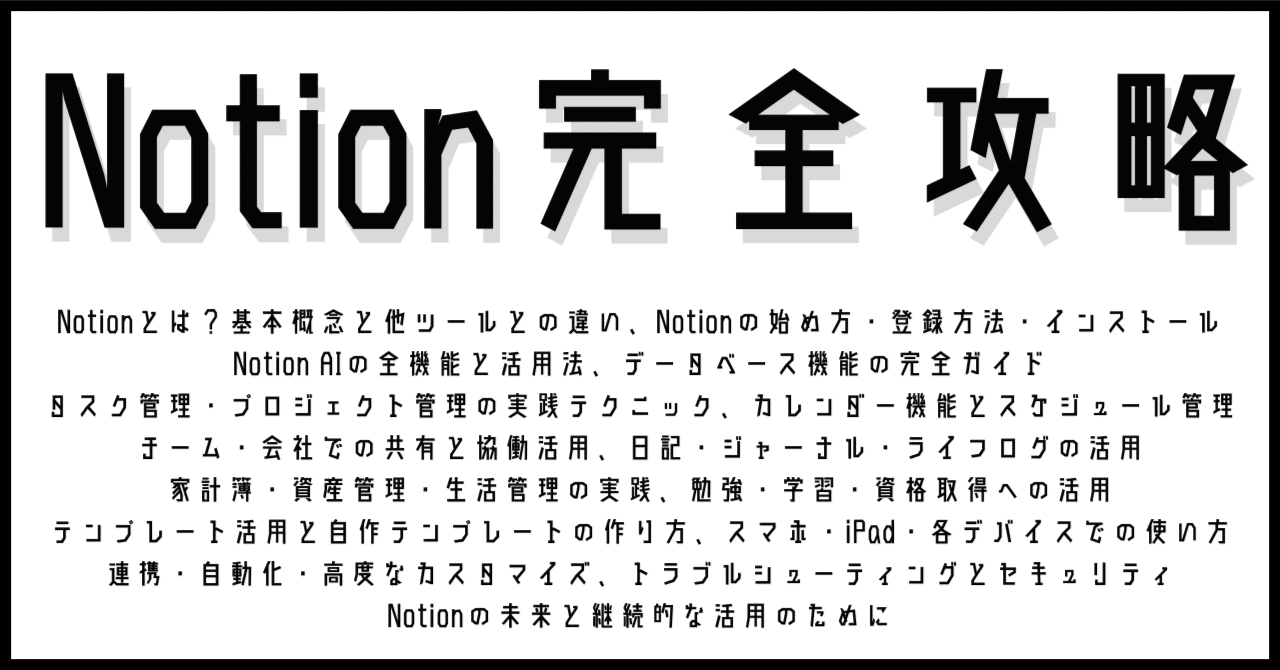 これらの内容を含む完全版(全15章)では、Notionのあらゆる機能と活用法を徹底的に解説しています。